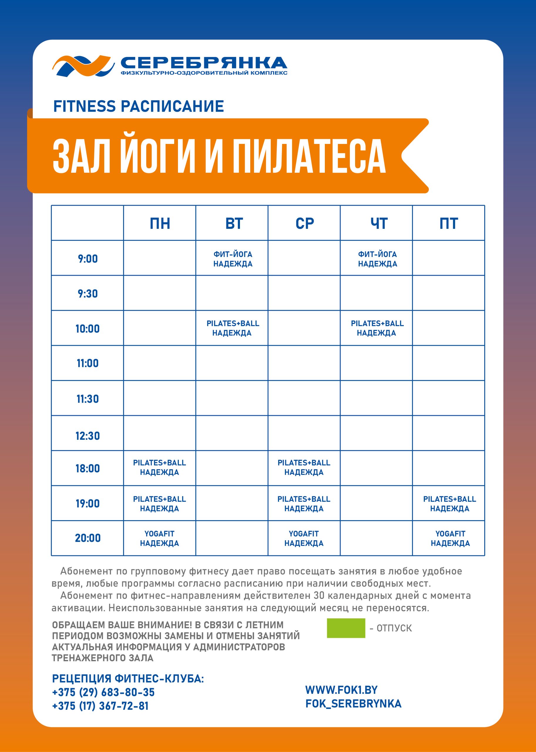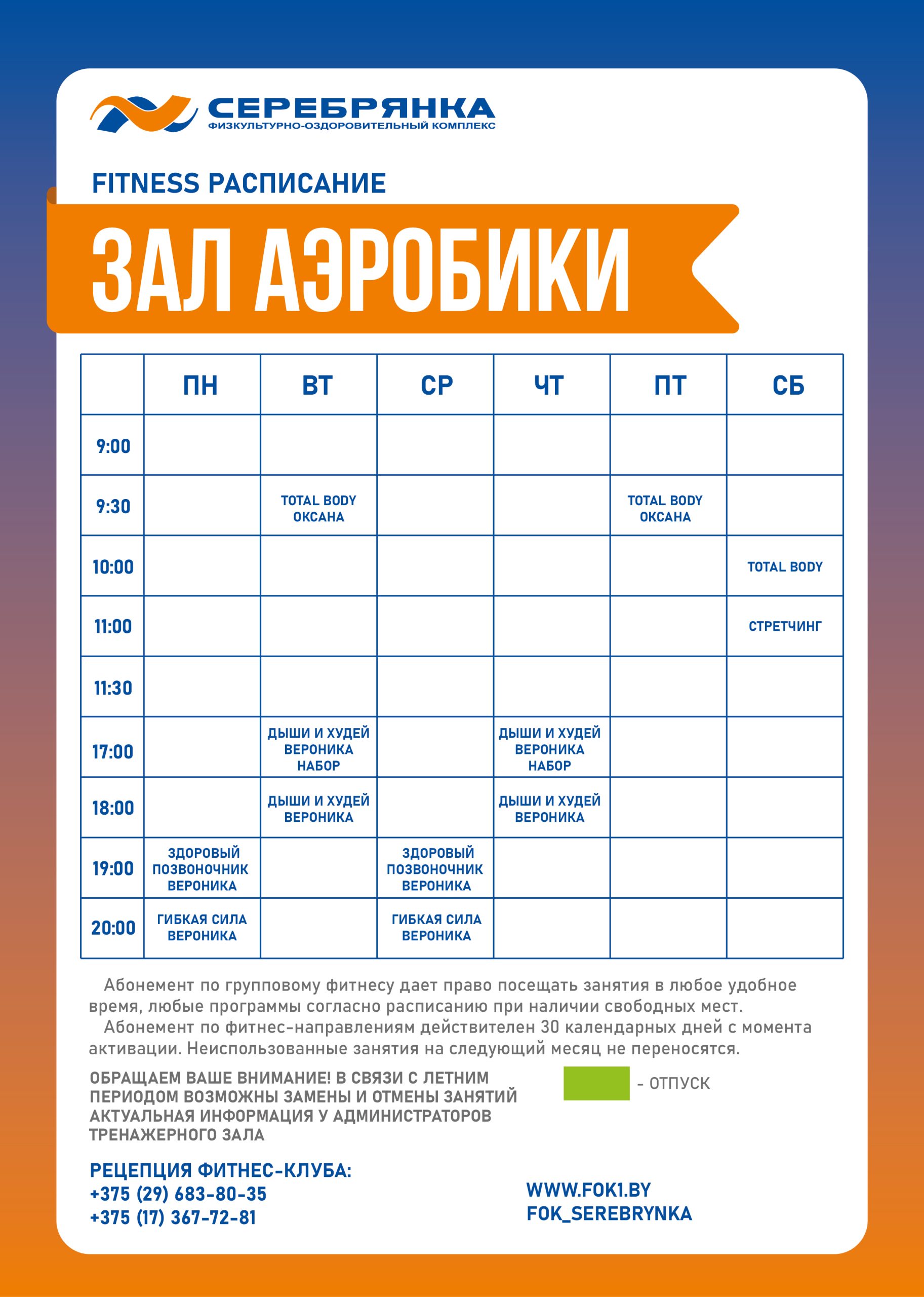 • Осенне-зимний режим работы ФОК «Серебрянка»